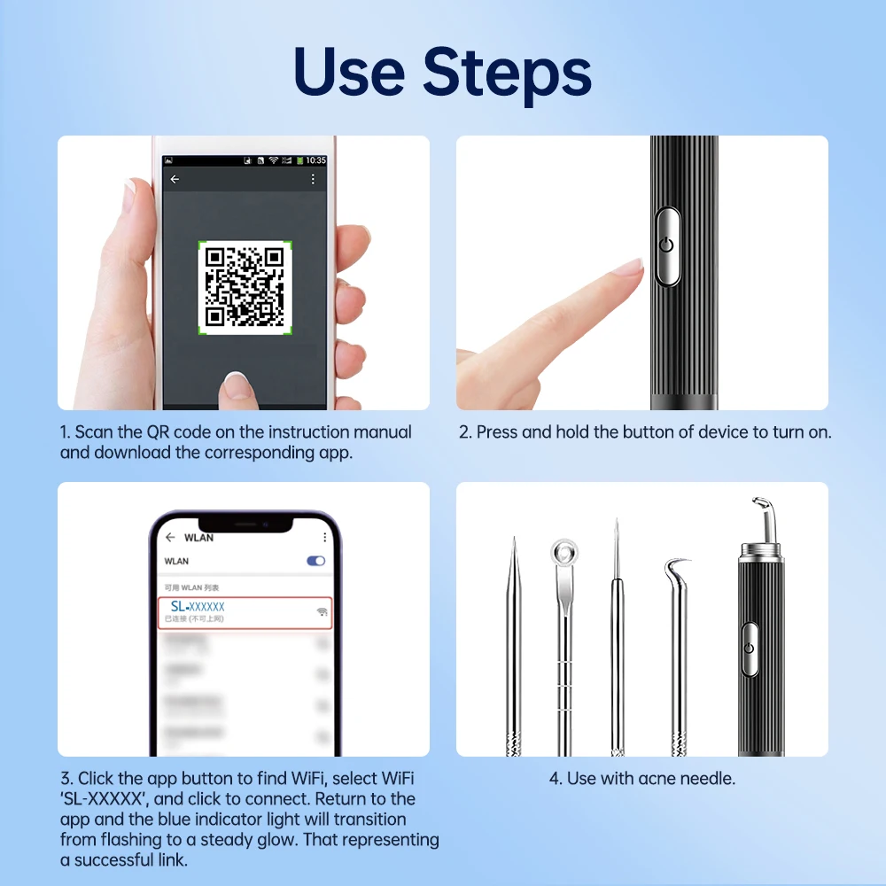 2. This acne and pore cleaner connects via Wi-Fi to your smartphone, supporting real-time App synchronization. Every step of the cleaning process is visible, giving you full control over your skincare routine.